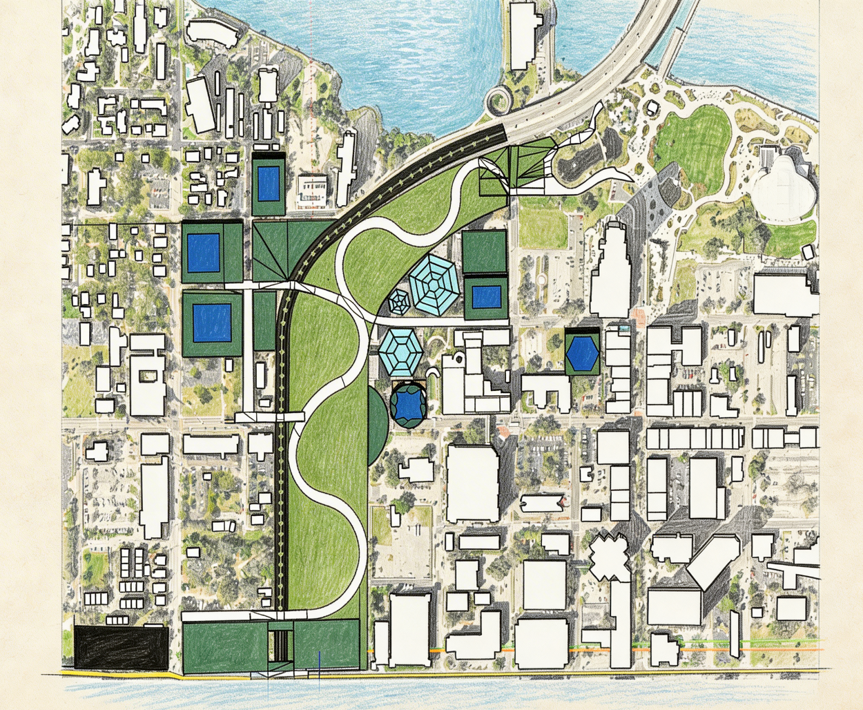 This is not a dream built on land we do not have. Twenty-four acres of county government properties already sit in the heart of downtown, adjacent to Coachman Park. By connecting the current Coachman Park footprint with a portion of county-owned buildings and a few parcels of adjacent land sandwiched between the county campus and the new Clearwater transit center, a 40-plus-acre waterfront park district connecting Coachman Park, the Pinellas Trail, the Clearwater Station transit hub, and the downtown core could be created.