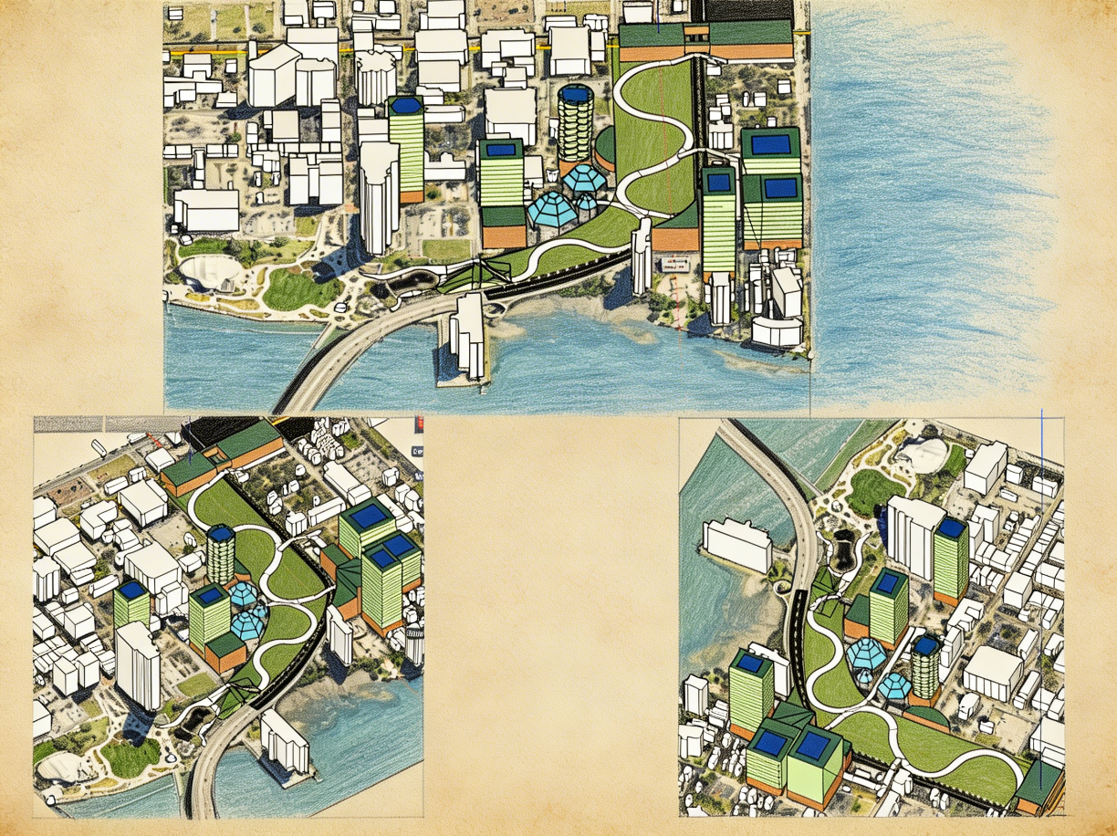 I want to show you what this could look like in initial rough sketches. Here is what the Clearwater Park district, a walkable waterfront landscape with winding paths, green space, cultural anchors, and mixed-use development along the edges, could look like. The county retains ownership of the land and leases parcels to developers under terms that require hotel rooms, ground-floor retail, and park maintenance contributions. The public controls the district. The public benefits from lease revenue and increased tourism tax revenue. The private sector builds around a world-class park because world-class parks create demand.